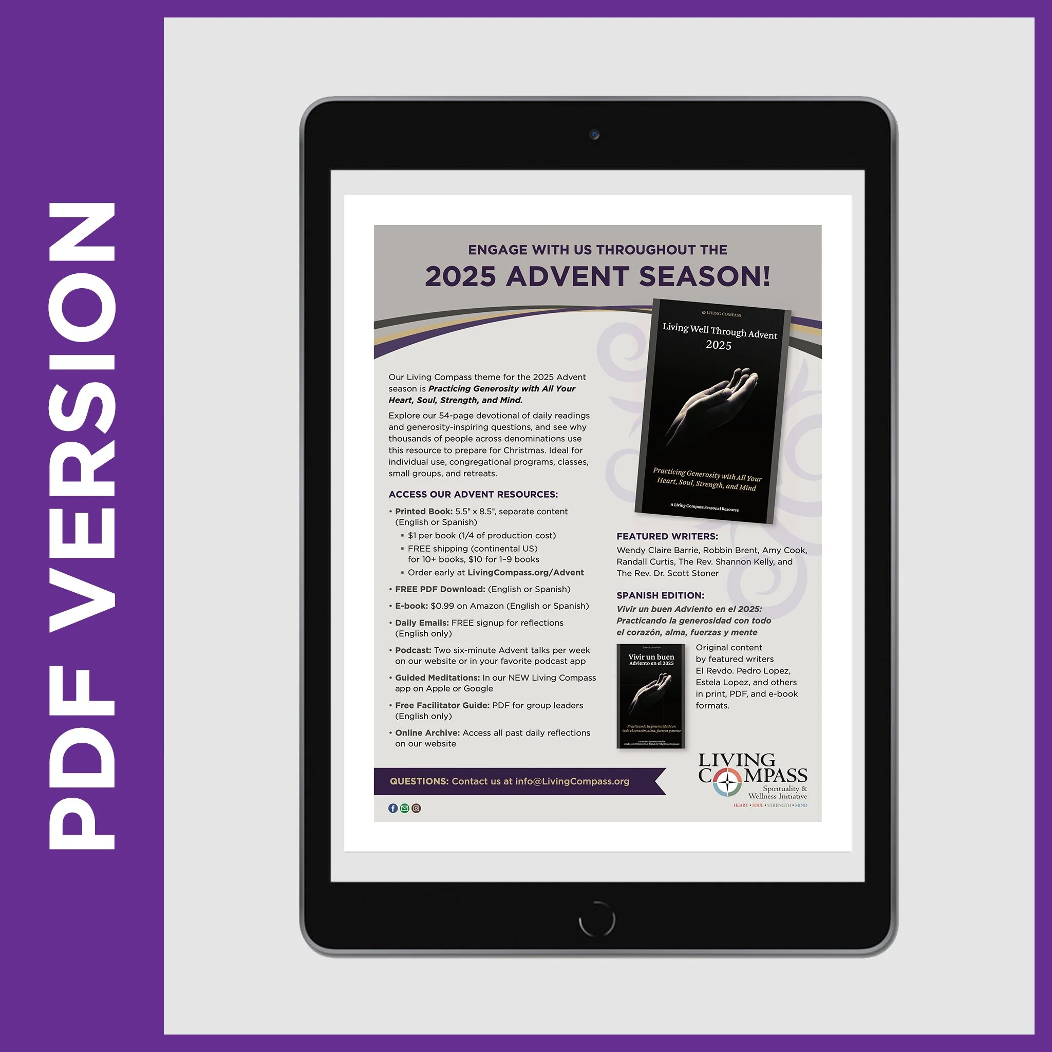 Order our Advent devotional as a printed 5.5" x 8.5" booklet in English and Spanish (with separate, original content) while supplies last.