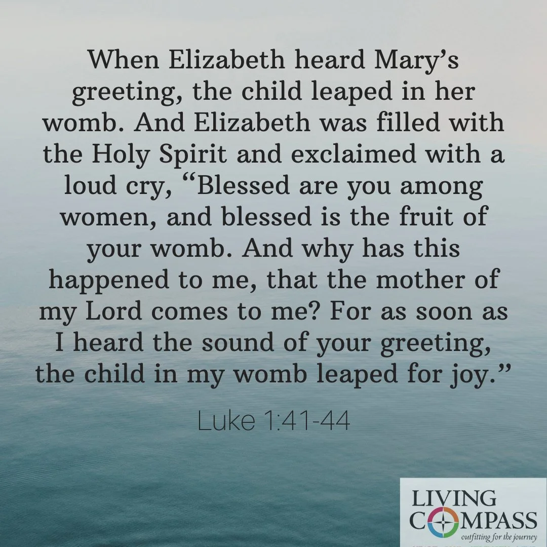 When Elizabeth heard Mary’s greeting, the child leaped in her womb. And Elizabeth was filled with the Holy Spirit and exclaimed with a loud cry, “Blessed are you among women, and blessed is the fruit of your womb. And why has this happened to me, that the mother of my Lord comes to me? For as soon as I heard the sound of your greeting, the child in my womb leaped for joy.”