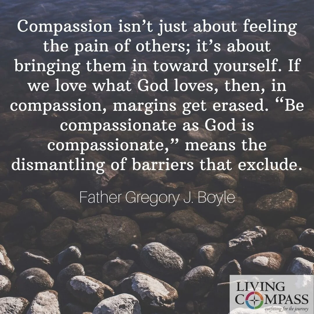 Compassion isn’t just about feeling the pain of others; it’s about bringing them in toward yourself. If we love what God loves, then, in compassion, margins get erased. “Be compassionate as God is compassionate,” means the dismantling of barriers that exclude.