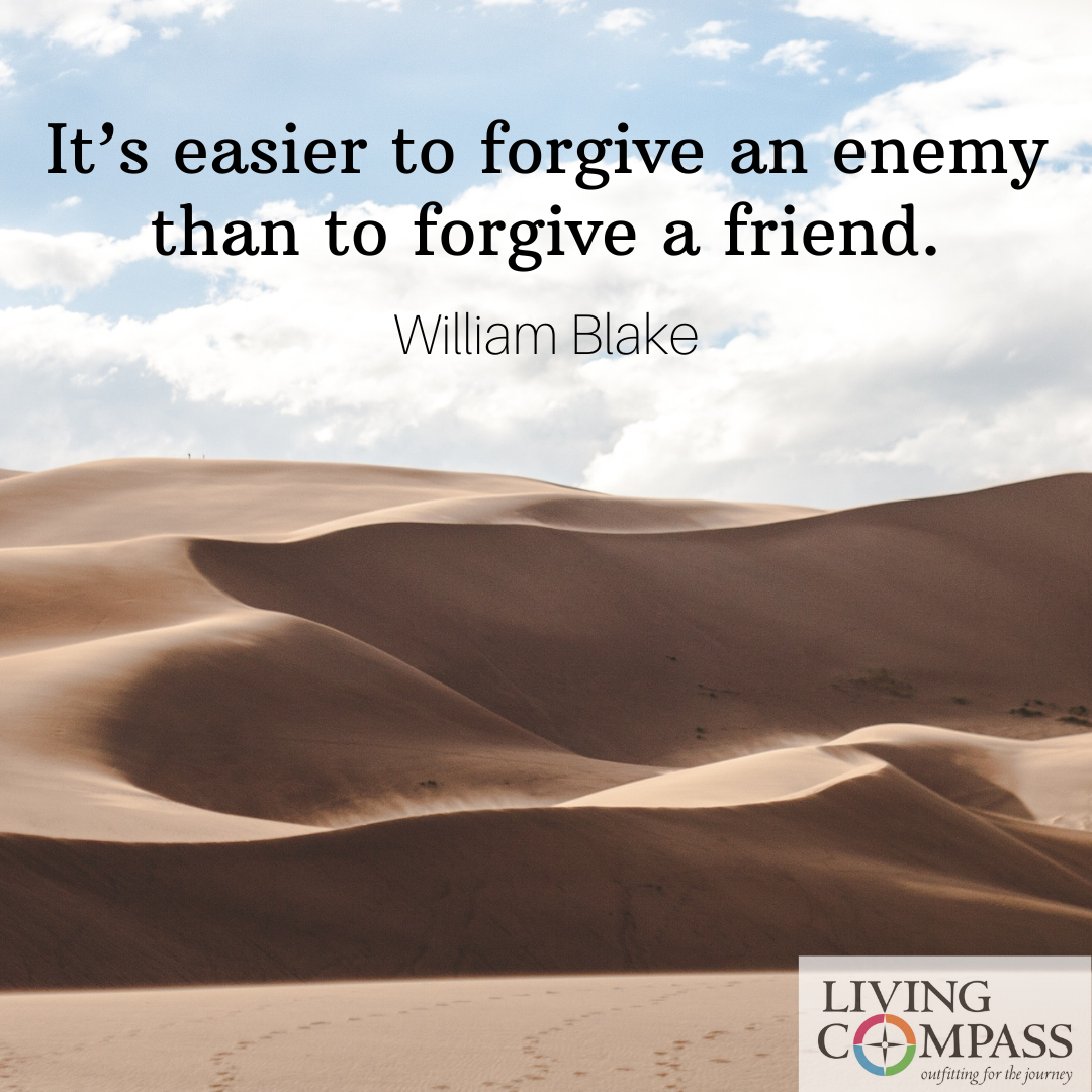 Blake’s observation above takes on new meaning when we think about those close to us: it’s often easier to forgive a stranger than a friend or family member. Why? Maybe because we carry different expectations for those closest to us. We believe they should understand us better and treat us more carefully. When those needs go unmet, the sting lingers.