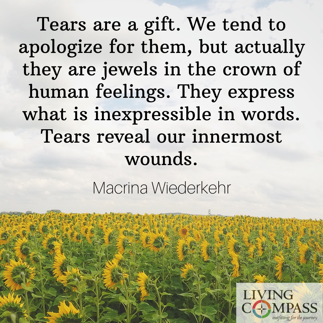 Tears are a gift. We tend to apologize for them, but actually they are jewels in the crown of human feelings. They express what is inexpressible in words. Tears reveal our innermost wounds.