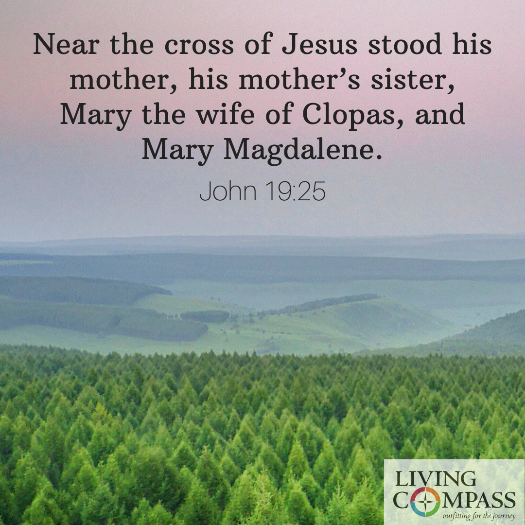 Near the cross of Jesus stood his mother, his mother’s sister, Mary the wife of Clopas, and Mary Magdalene.